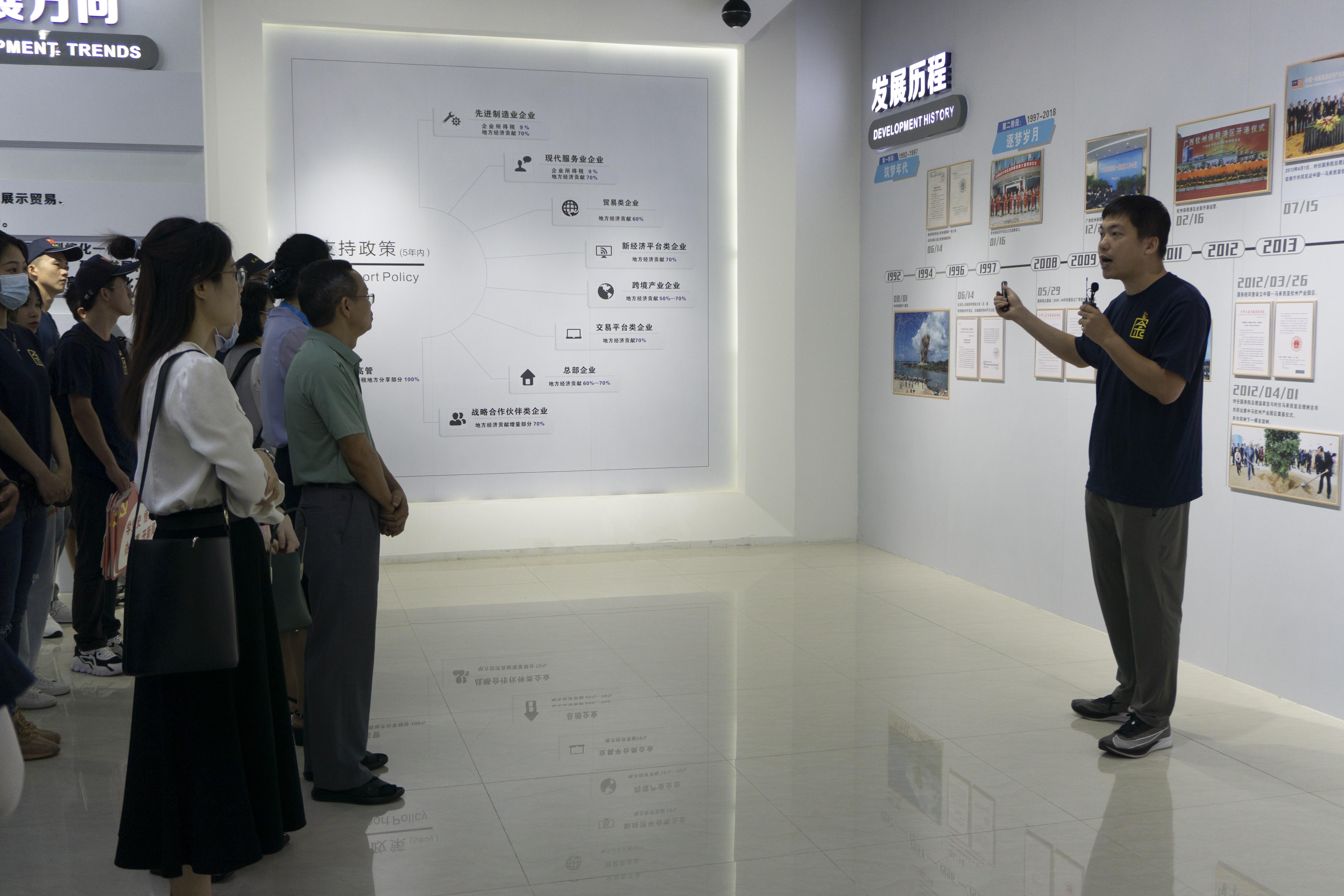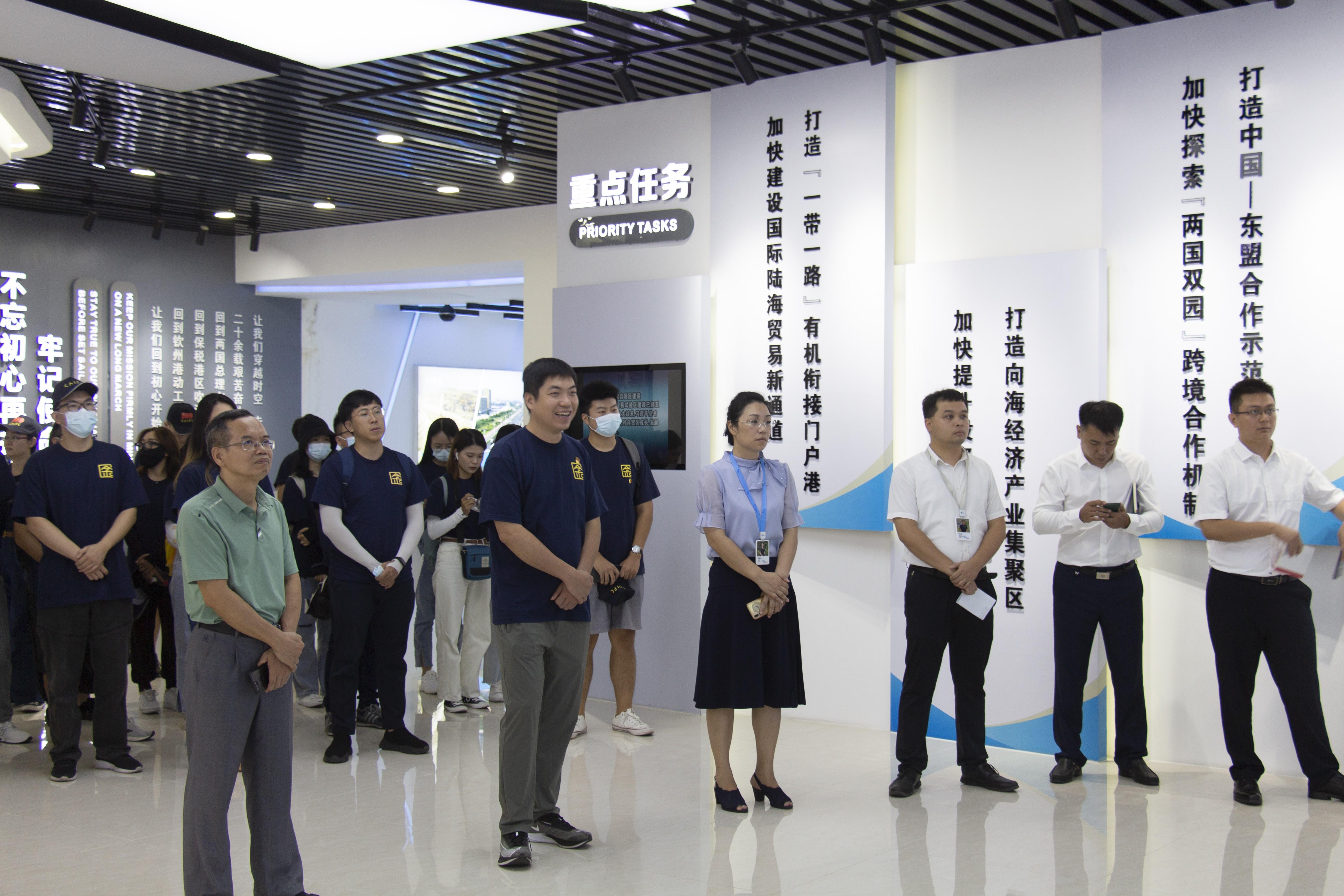 师生参观来到中国(广西)自由贸易试验区(钦州港片区),进一步了解试验区的发展历程以及试验区重点产业的发展与进程。在参观之际,探花