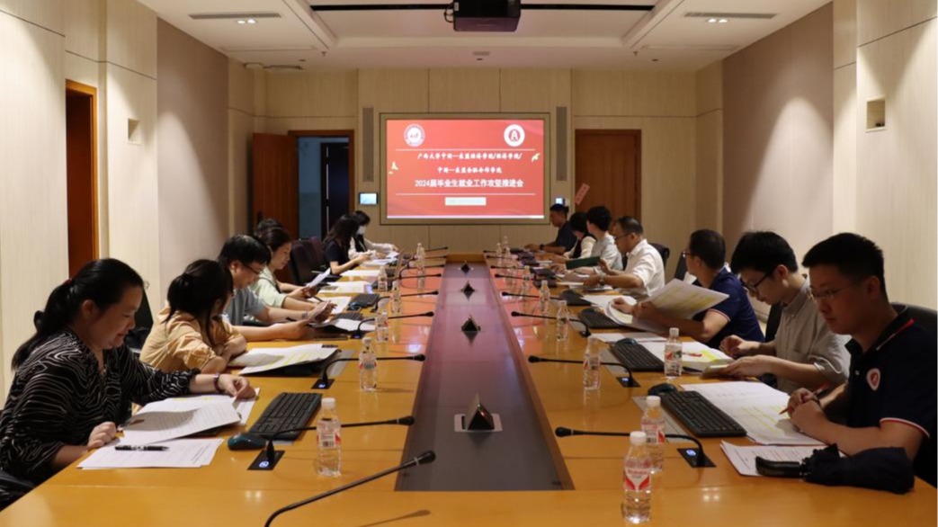 /中国—东盟金融合作学院在学院B210会议室召开2024届毕业生就业工作攻坚推进会。学院党委常务副书记罗诚、院长李光辉、党委副书记陈卉娟、副院长梁权熙,以及2024届毕业班班主任和学工组全体辅导员参加会议。会议由陈卉娟副书记主持。