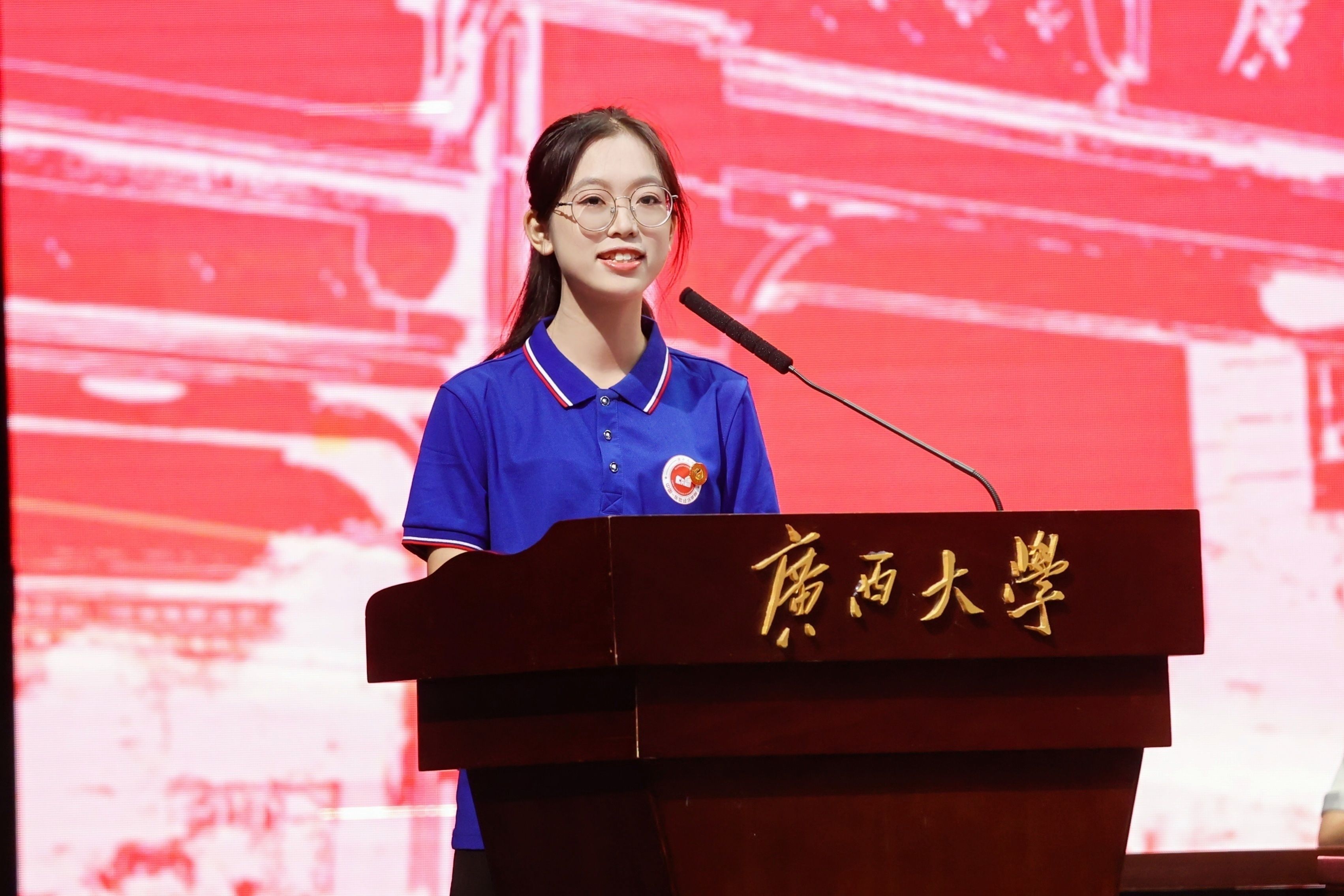 2024级新生代表、经济学专业本科生李晶在发言中表达了入学的喜悦及对校园生活的憧憬,她认为探花