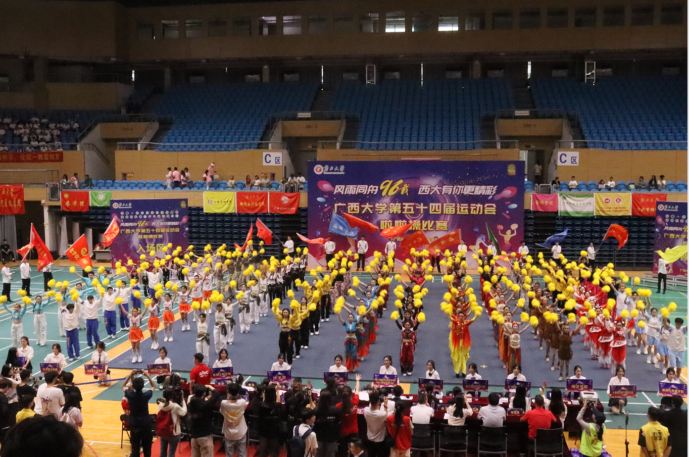 第五十四届运动会啦啦操比赛在西校园综合体育馆举行。本次比赛全校共有24个学院代表队参加,其中分为大学院组16支队伍,小学院组8支队伍。探花