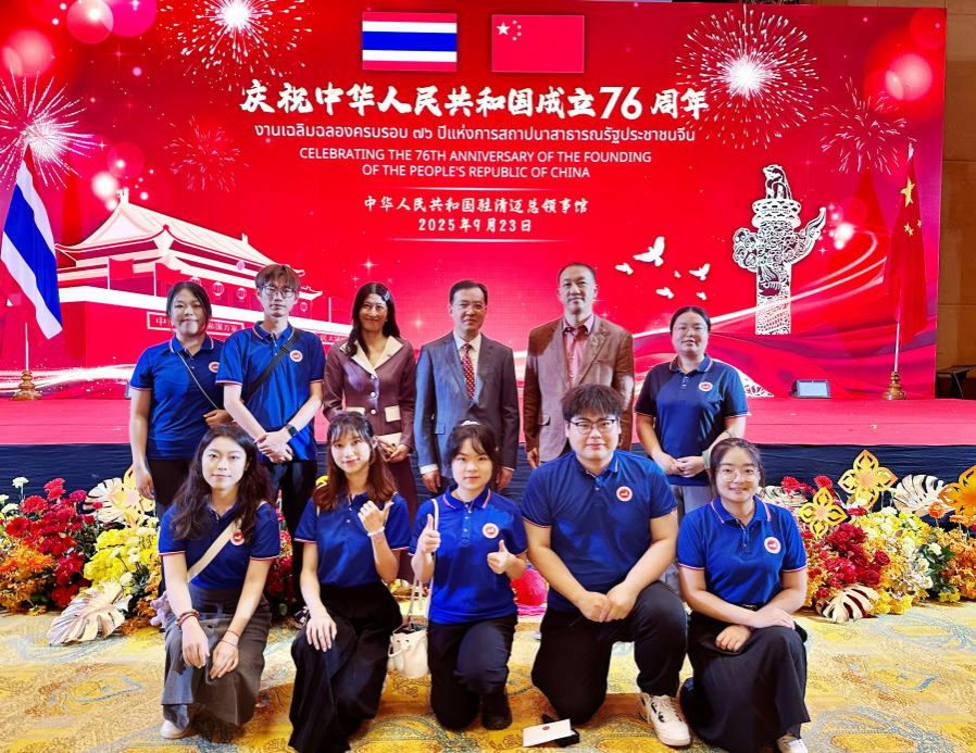 暑期赴清迈大学交流访学团在Shangri-La Chiang Mai(清迈香格里拉酒店)参加了庆祝中华人民共和国成立76周年国庆晚会。清迈主要侨领与商会代表、中资机构代表及留学生等各界人士出席本次活动,共同庆贺共和国华诞。