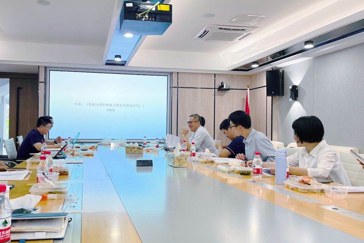 102顺利举行。本次论坛由刘骞文副教授汇报工作论文“雾霾污染影响地方政府举债成本吗?来自地级市城投债的证据”,特别邀请曾海舰教授和莫亚琳副教授进行点评。论坛由梁权熙副院长主持,来自金融系、经济系和国贸系的16位师生参加了本次活动。
