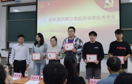 伴随着慷慨激昂的国歌声,仪式拉开了序幕。院党委书记陆善勇教授为第四期党校班的优秀学员代表颁发优秀学员证书并合影留念。