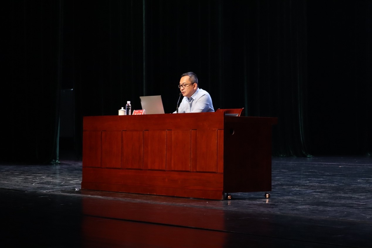 /中国-东盟金融合作学院党委副书记、副院长郭宇路在汇学堂为2022级本科新生做学科专业和学籍管理教育讲座。
