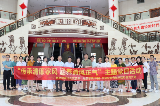 审计处党支部前往广西民族博物馆参观“家和万事兴——广西家庭家教家风主题展”,开展支部共建“传承清廉家风 涵养清风正气”主题党日活动。学院党委书记陆善勇、校审计处处长谭银花、探花
