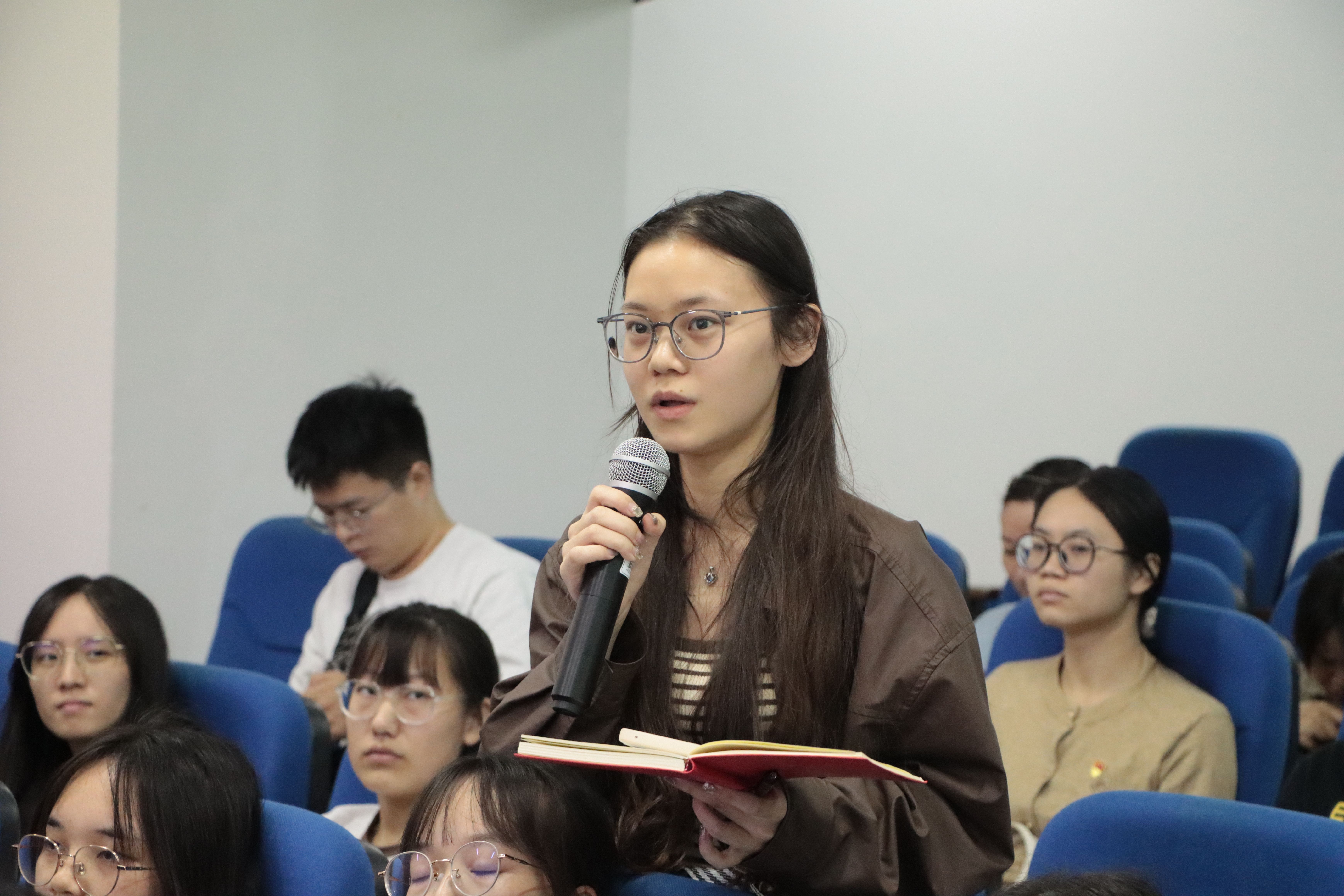 培训会上,廖志丹以《基层党组织如何开展好主题党日活动》为题,从立足“高”字强站位、立足“实”字夯基础、立足“变”字求创新、立足“效”字显成果等四个方面为大家作了一场透彻深入、鲜活生动的党务工作经验分享报告。她指出,基层党建重在活动、重在制度、重在人心。基层党务工作要严格按照党中央要求,将“三会一课”、主题党日活动、谈心谈话等制度不折不扣落实,在执行过程中,既要做到严肃党内生活,又要做到工作有温度、服务暖人心。她结合自身多年来的党建工作实践和心得体会进一步讲述了开展主题党日活动的思路设计、方式创新、活动载体、品牌打造等,图文并茂、绘声绘色的讲述引发在场师生的共鸣和思考。大家纷纷表示,廖志丹书记的精彩分享对做好基层党建工作具有很强的针对性和指导性,将积极借鉴和学习优秀基层党组织的先进经验和做法,创新工作思路和方法,推动探花
