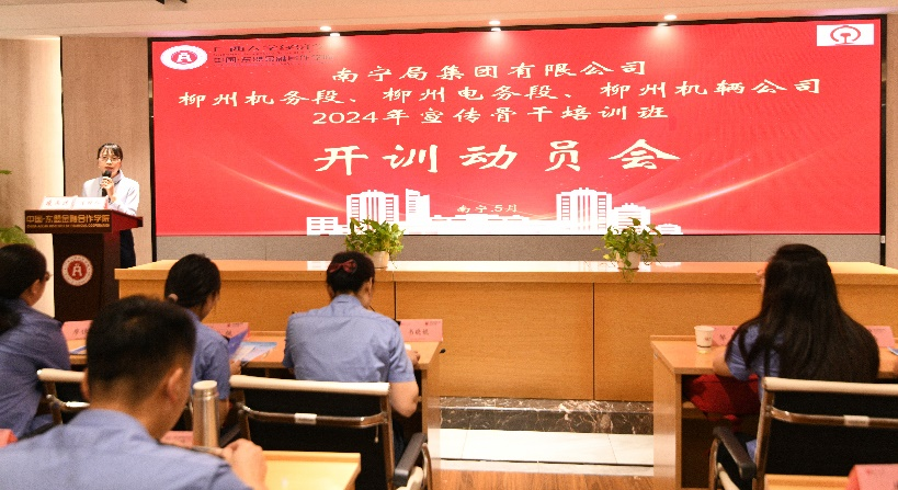 举办的南宁局集团有限公司柳州机务段、柳州电务段、柳州机辆公司2024年宣传骨干培训班正式开班,近80名学员参加本次培训。本次培训旨在提升铁路战线宣传骨干的宣传写作能力、政治素质,更好地讲好铁路故事、传播好中国声音。