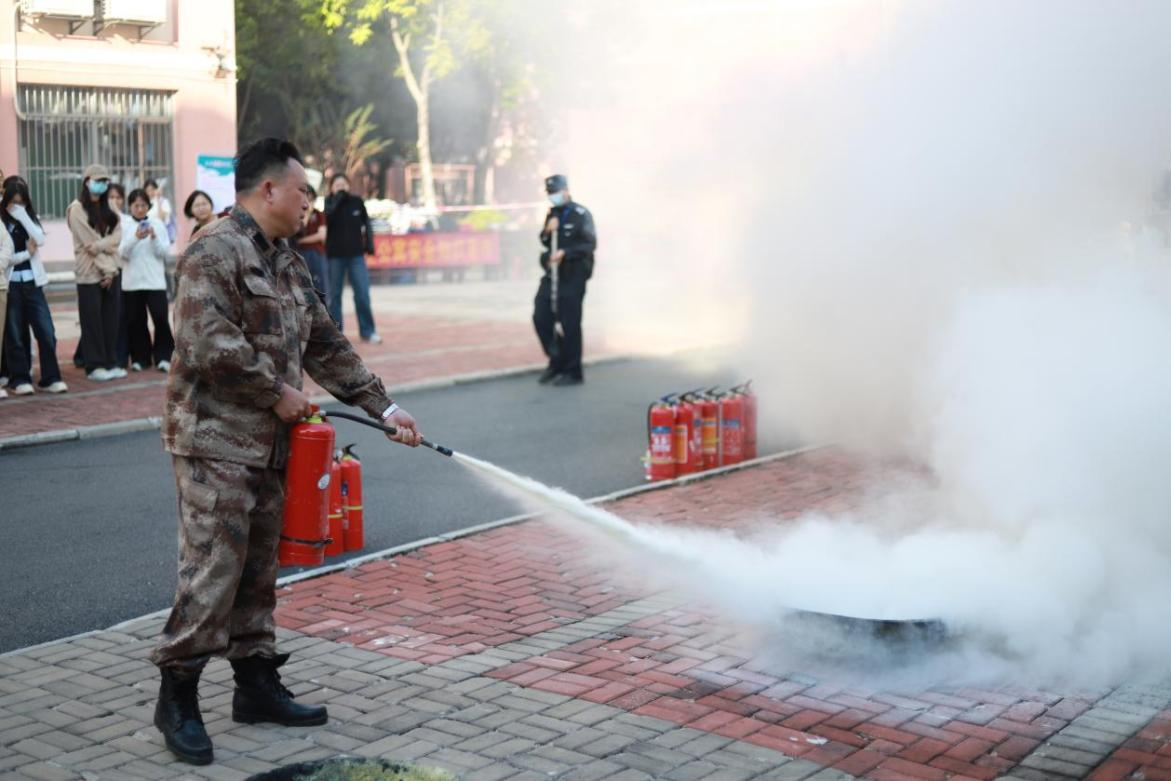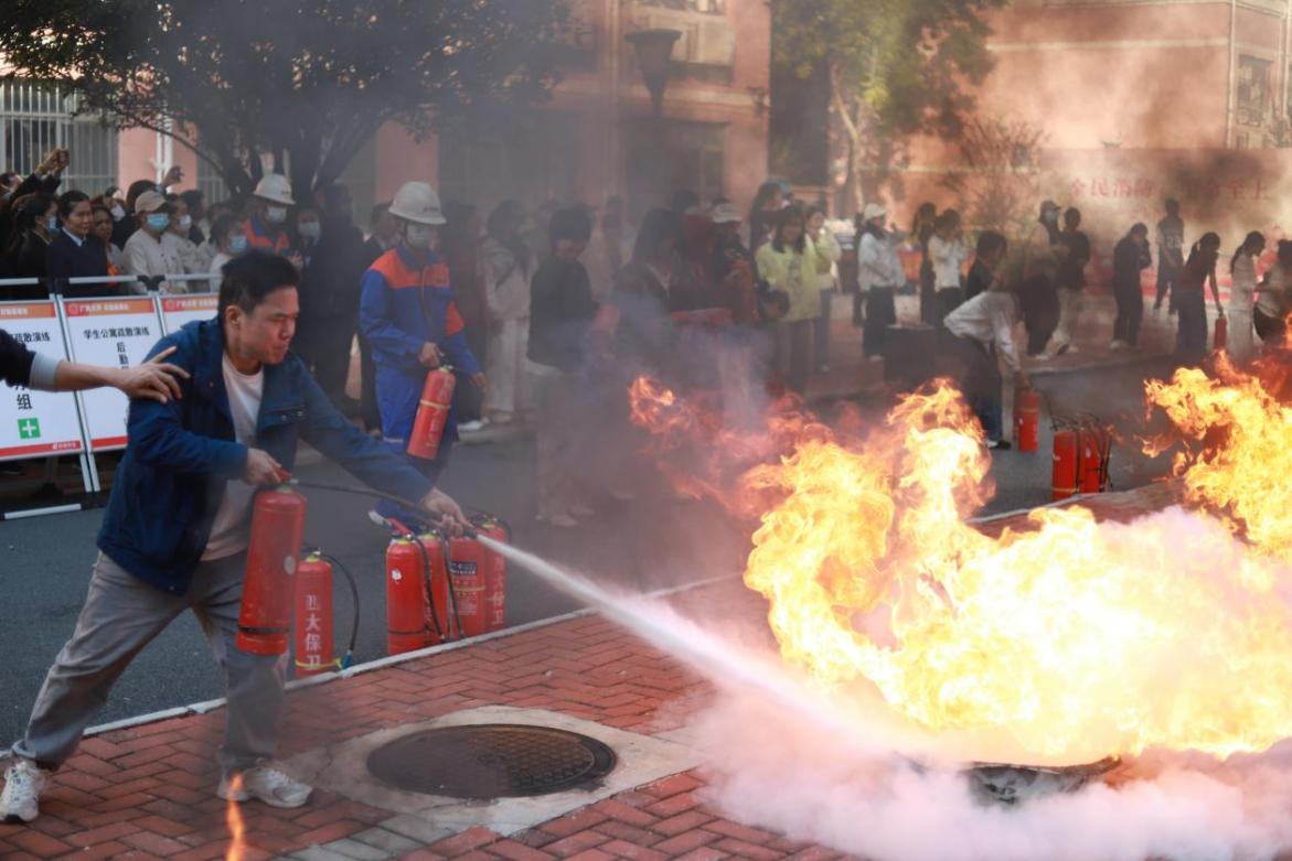 随后,师生们在通风空地上开展了灭火器实操演练,消防安全员现场演示操作规范与关键技巧,师生们积极参与、认真练习,圆满完成实操任务。活动最后,参与演练的同学通过消防安全知识答题,领取了消防安全纪念品。