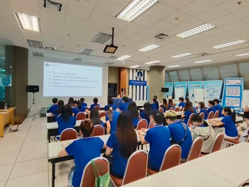 专题讲座环节,泰国央行政策研究部专家以“通货膨胀的治理”为题,系统阐述了央行的核心职能与政策工具箱。专家从市场价格波动的多维影响切入,深入分析了通胀对泰国民生福祉、企业运营和投资环境的深远影响,并介绍了央行如何运用货币政策等工具进行宏观调控。讲座内容既有理论高度,又贴近现实经济,使同学们对泰国的经济生态与政策逻辑有了更立体、更系统的认知。