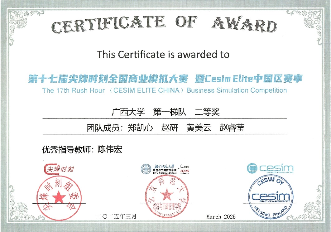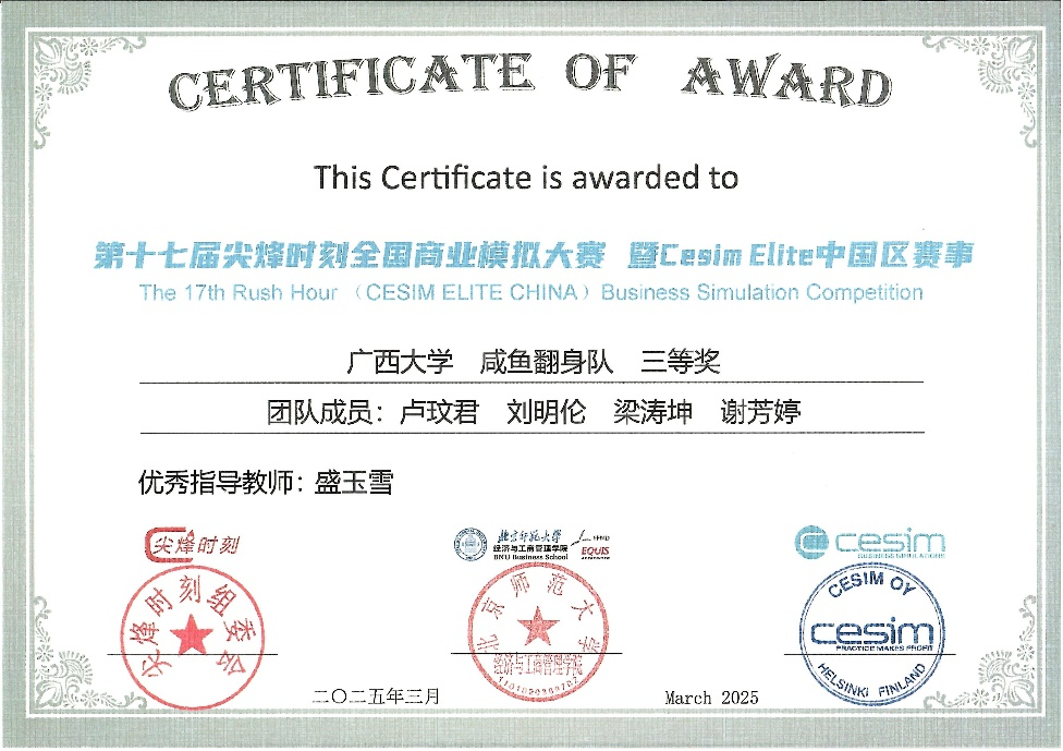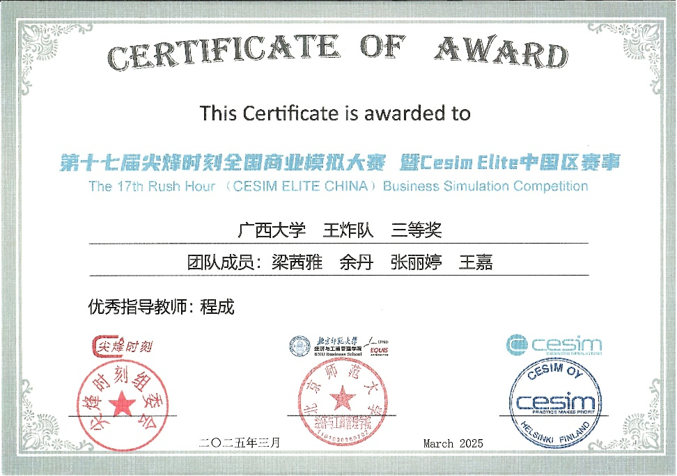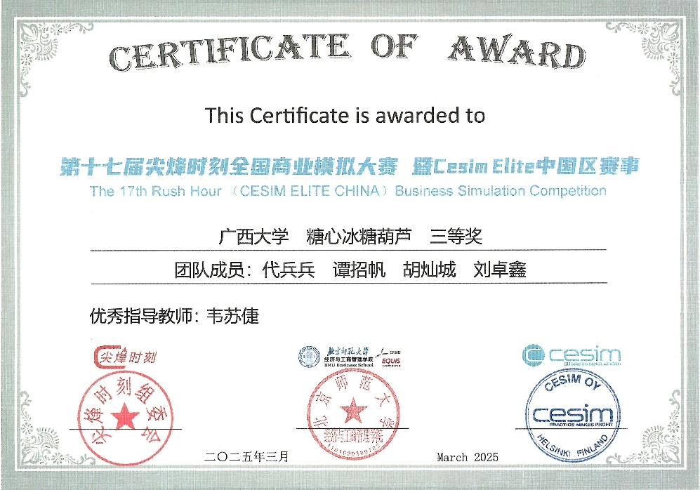 2025年3月28日至30日,第十七届“尖烽时刻”全国商业模拟大赛总决赛暨Cesim Elite中国区赛事在北京师范大学隆重举行。经历初赛、复赛的激烈角逐,探花