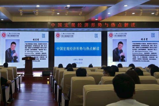 2001级国际贸易学硕士研究生校友程名望教授应邀回校为学院师生作题为《中国宏观经济形势与热点解读》的学术讲座。探花