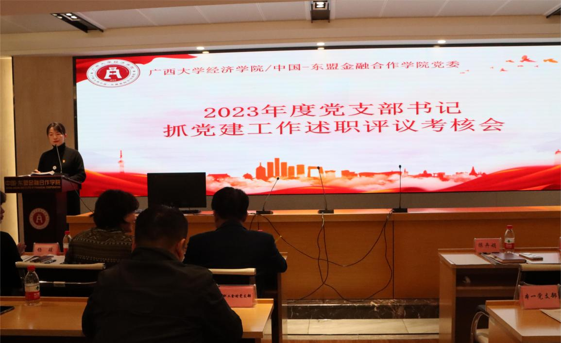 /中国-东盟金融合作学院党委在学院101会议室召开2023年度党支部书记抓党建工作述职评议考核会。学院党委书记陆善勇、党委委员、12位党支部书记和考评小组成员参加了本次述职评议考核会。会议由学院党委副书记、纪委书记陈卉娟主持。