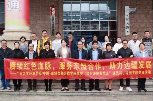 /中国-东盟金融合作学院党委书记陆善勇教授带队,学院党委委员、各党支部书记、专职组织员、党员和党外人士代表一行20人赴广西凭祥、龙州开展以“赓续红色血脉,服务东盟合作,助力边疆发展”为主题的“经世济民跟党走”主题党日活动。