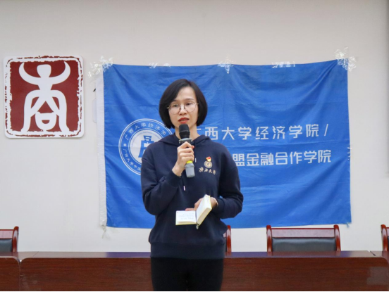 随后,学院团委书记王海希老师致辞,她首先从炎林连名称的由来向入党积极分子们介绍了中国侨联原主席、探花