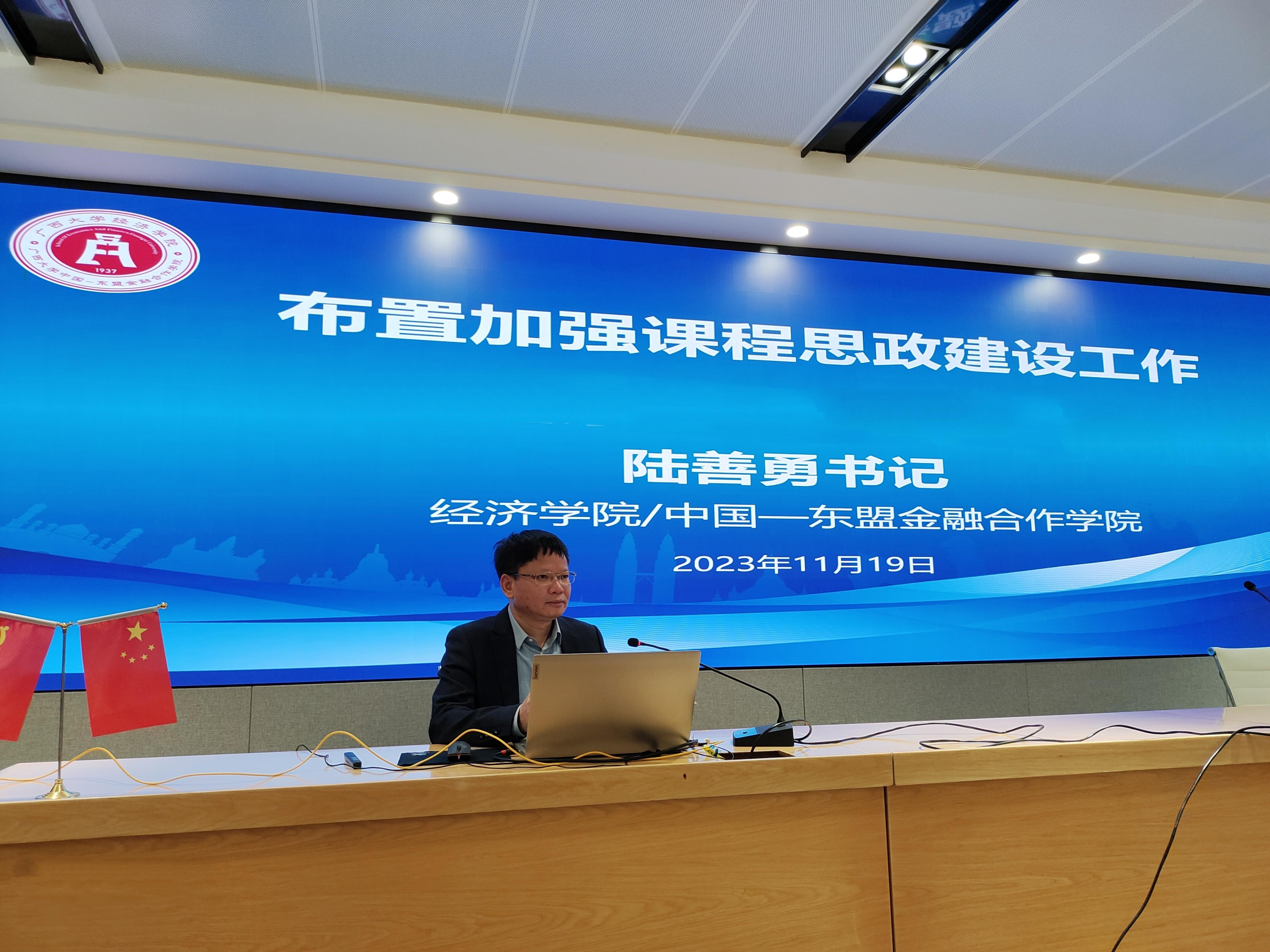 /中国-东盟金融合作学院召开课程思政建设工作推进会,院党委书记陆善勇结合探花