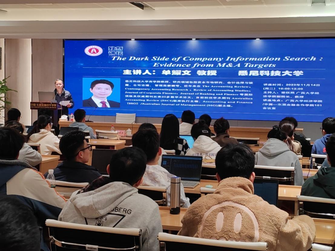 师生带来题为“The Dark Side of Company Information Search: Evidence from M&A Targets”的学术讲座。学术讲座在探花