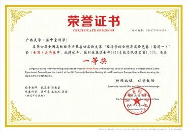经济学系盛玉雪和郭南芸老师从5月初便开始召集参赛队伍课外集训。二是校内外联合:在校内训练基础上,也通过与广西外国语学院组织友谊赛等形式不断提升比赛水平。三是有突破:赛道一“经济学综合博弈实验竞赛”中,通过与来自全国244所高校的3916支队伍的竞技后,探花