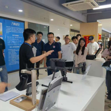 调研团第三站是南宁中关村创新示范基地。师生一行来到万航星空科技有限发展公司,销售经理向师生们详细介绍了无人机设备的技术构成及应用方向,包括万航星空集团自主研发火星(MARS)、金星(VENUS)等数字化应用产品、大数据公共服务平台、实景三维大数据平台、GIS+BIM技术等高新技术项目相关情况,其中无人机技术可应用于测绘作业、水库巡检等令人印象深刻。