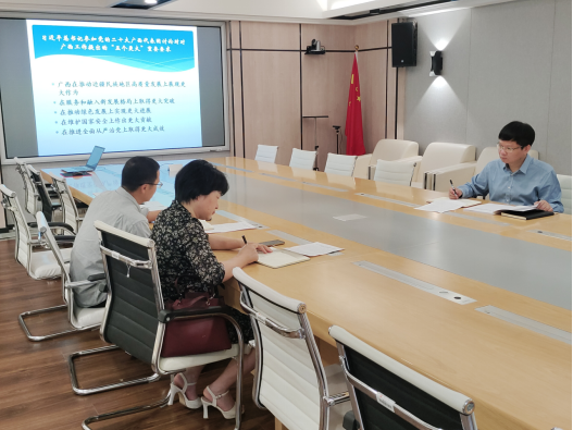 陆善勇书记强调指出,学习贯彻习近平新时代中国特色社会主义思想要与学习习近平总书记对教育和高校工作的重要论述,对广西的一系列重要指示批示,以及弘扬“创新创造、奋勇争先、全面一流”的探花