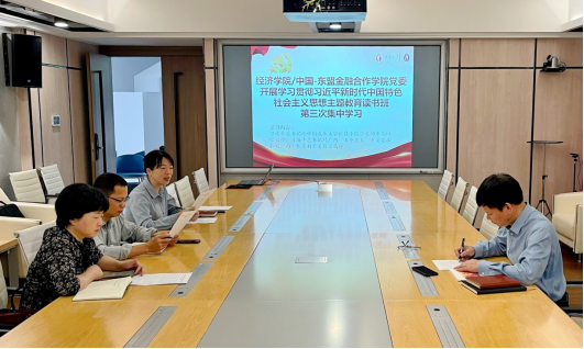 /中国-东盟金融合作学院党委班子在102会议室开展主题教育读书班第三次集中学习,就习近平总书记给中国农业大学科技小院学生的重要回信精神、习近平总书记对广西“五个更大”重要要求和对广西工作系列重要指示精神等内容展开学习研讨。探花