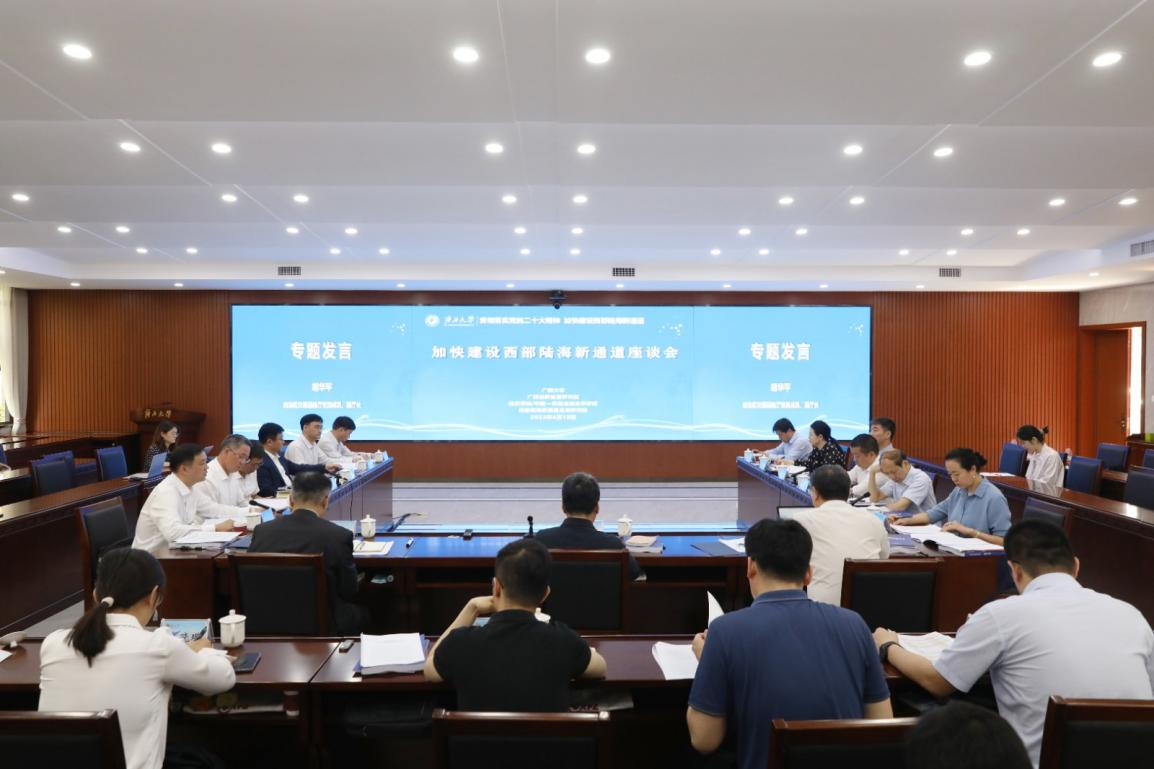 4月18日,我校举办加快建设西部陆海新通道座谈会,会议以“贯彻落实党的二十大精神 加快建设西部陆海新通道”为主题,由探花