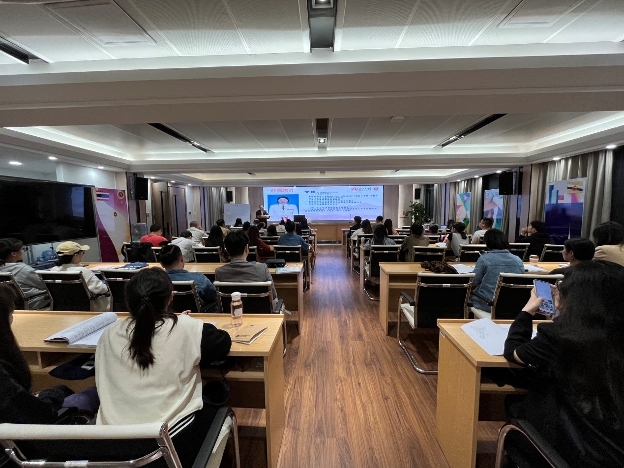 学院党委副书记、副院长郭宇路结合自身的东盟工作经历向同学们介绍了泰国国情和社会文化概况,鼓励探花