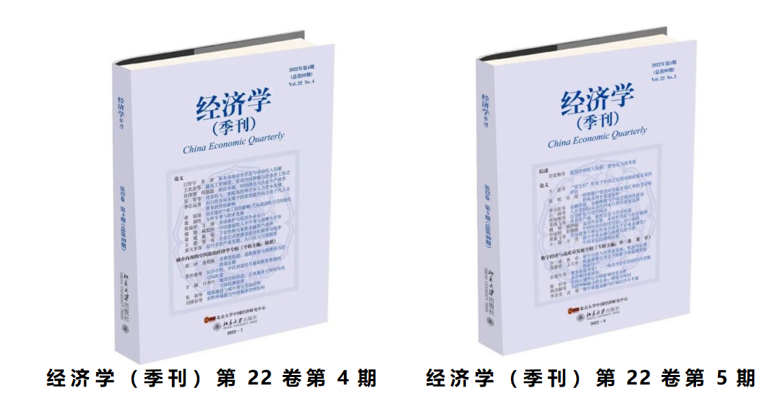 曾海舰、黄天宇老师分别在国内社科中文顶尖学术期刊《经济学(季刊)》第22卷第4期、第5期上发表学术论文。