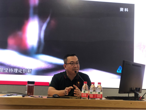 /中国—东盟金融合作学院党委副书记、副院长郭宇路在学院101会议室为本科生第一、第二党支部和研究生201支部的150余名党员讲授“对党忠诚”专题党课。