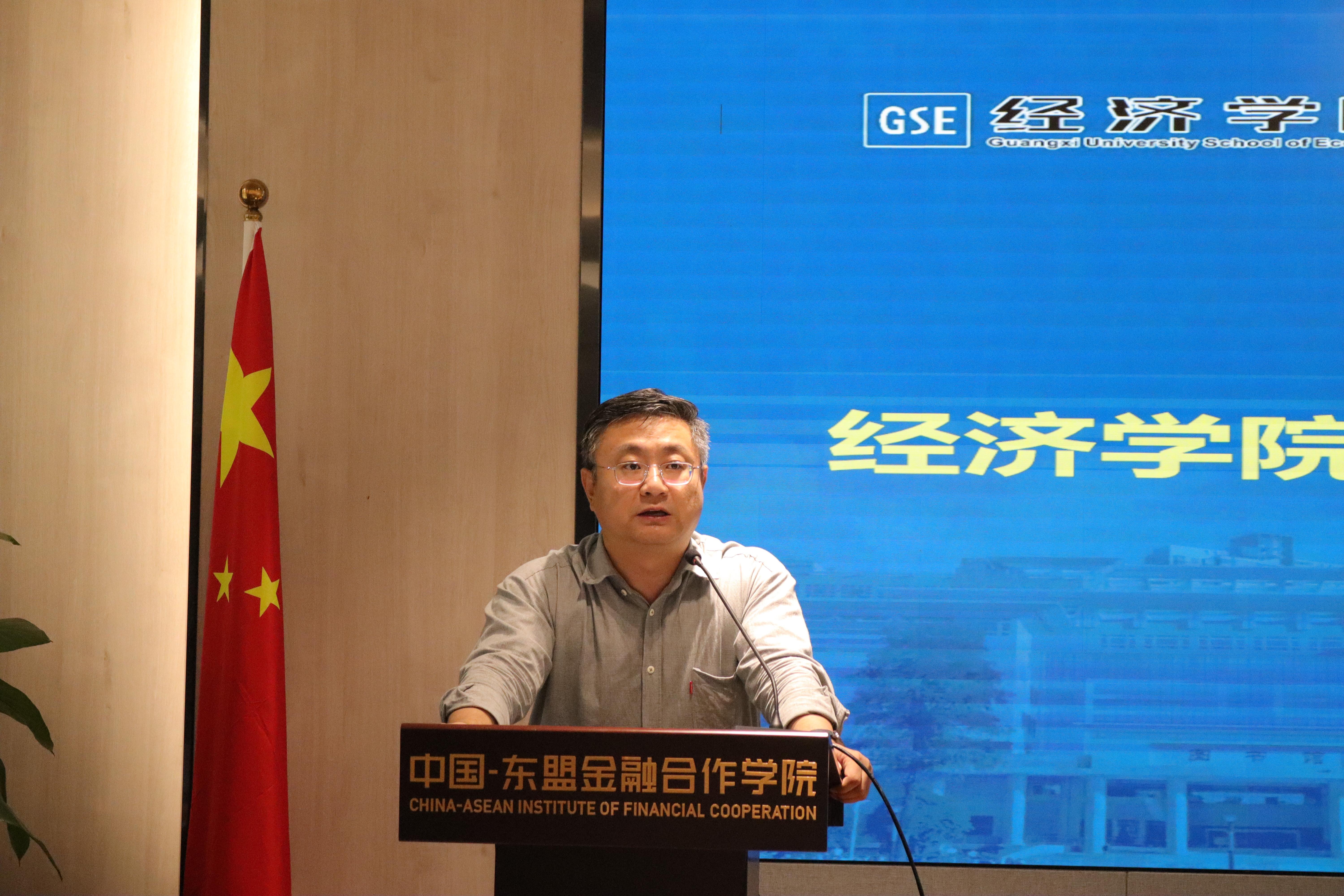 田利辉副校长介绍了学院在人才培养、科学研究、服务于广西经济金融发展的智库建设等方面的优势特色,他强调,学院是聚集老师、同学、企业未来所需人才的平台,协会是以企业为主的平台,希望以此次签约为契机,一是推动广西资本市场、上市公司的发展;二是推动老师们科研、资政方面的发展;三是推动产教融合、协同育人,促进学生们的就业实习;四是推动社会对投资实践的认识;五是推动与协会及会员单位在项目研究、咨询等领域的合作,共同促进和实现企业和广西经济的高质量发展、教育事业的高质量发展。
