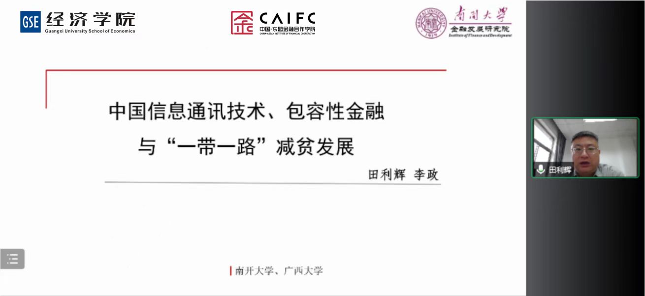 田利辉教授在题为《中国信息通讯技术、包容性金融与“一带一路”减贫发展》的主题报告中,使用115个国家的数据对数字普惠金融带来的减贫发展进行了阐释,强调中国企业凭借物美价廉的设备为“一带一路”的发展中国家提供了技术可得性,跨越了数字鸿沟,进而借助金融数字化推动了全球减贫事业的发展。