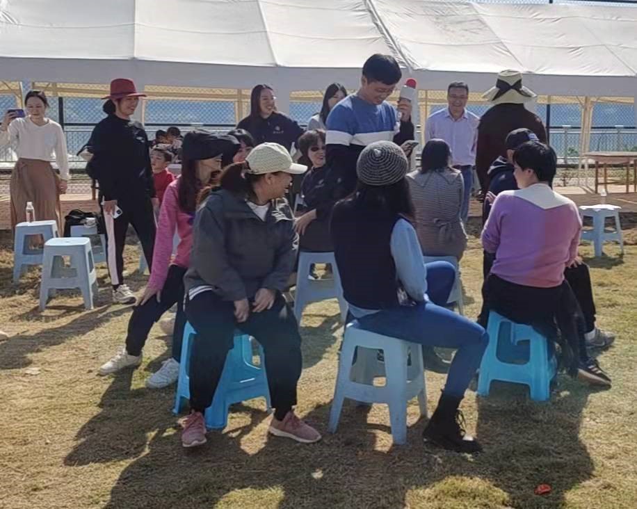 教职工在玩趣味团体游戏之“抢凳子大作战”