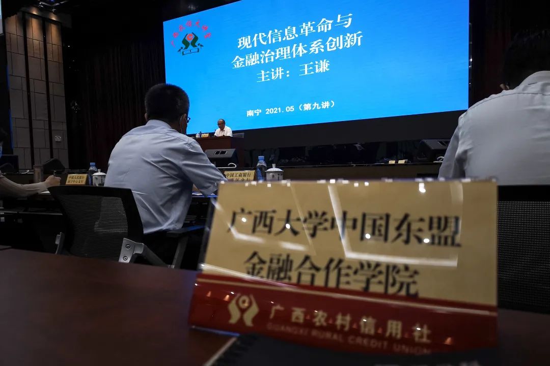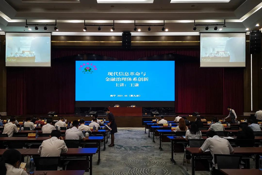 专职副书记郭宇路应邀出席由广西农村信用社联合社在南宁市广西金融广场举办的广西农信大讲堂活动。本次大讲堂主讲人为四川大学公共管理学院的王谦教授。他以《智慧党建引领下的现代信息革命与金融治理体系创新》为题,系统阐述了现代信息革命与社会变革的内涵、信息社会特征与金融治理体系创新。同时结合丰富的案例分析介绍信息社会数字金融治理技术、模式与理论,提出了数字金融治理的实现途径。
