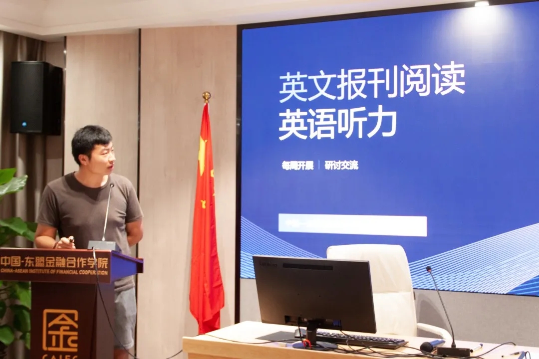 研究生会在院101会议室开展每周英文金融报刊阅读与英语听力的特色学习活动。本次活动邀请到外国语学院MTI翻译硕士刘宇晨和包成敏同学对内容选择与翻译要点进行指导,同学们积极参与讨论,现场氛围活跃。