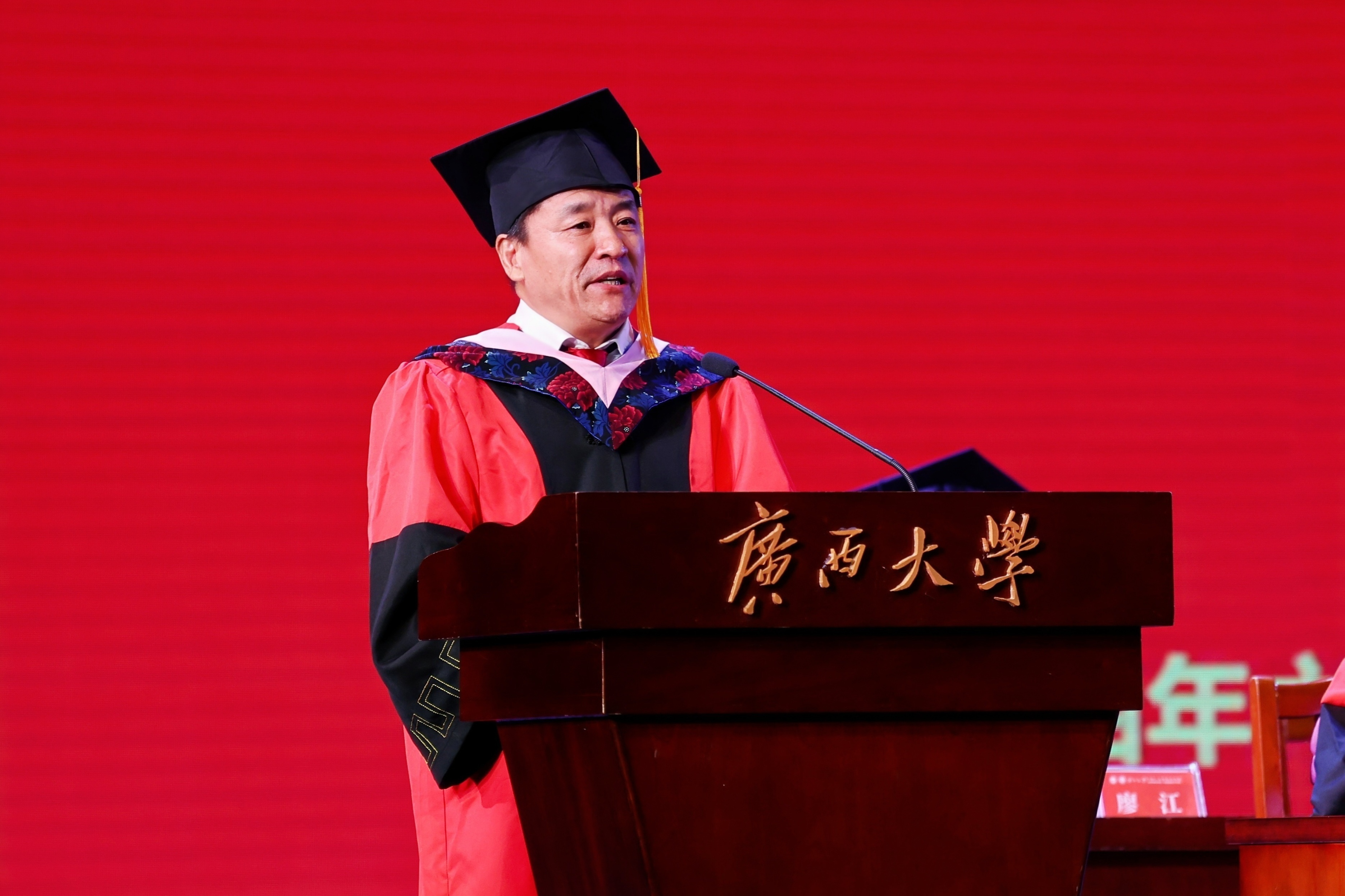 李光辉院长向全院2024届毕业生致毕业辞。他代表学院向同学们表示热烈祝贺和诚挚祝福,向悉心培养学生成长成才的家长和老师表达衷心的感谢。他对毕业生提出三点期望:一是乘风万里,心怀青云之志。希望身处新时代的同学们要坚定地树立起为国家和人民攻坚克难、博学报国的远大志向,在人生的舞台上开拓创新,建功立业;二是保持热爱,奔赴梦想。希望同学们认可自我价值,让热爱在奋斗中澎湃,在每一个可以创造价值的地方砥砺前行;三是突破自我,勇攀高峰。要坚定“把每一项平凡工作做好就是不平凡”的恒心,保持“把每一件小事情做好就是大事业”的匠心,用智慧和奋斗创造西大经院人新的精彩。他还表示,母校和探花