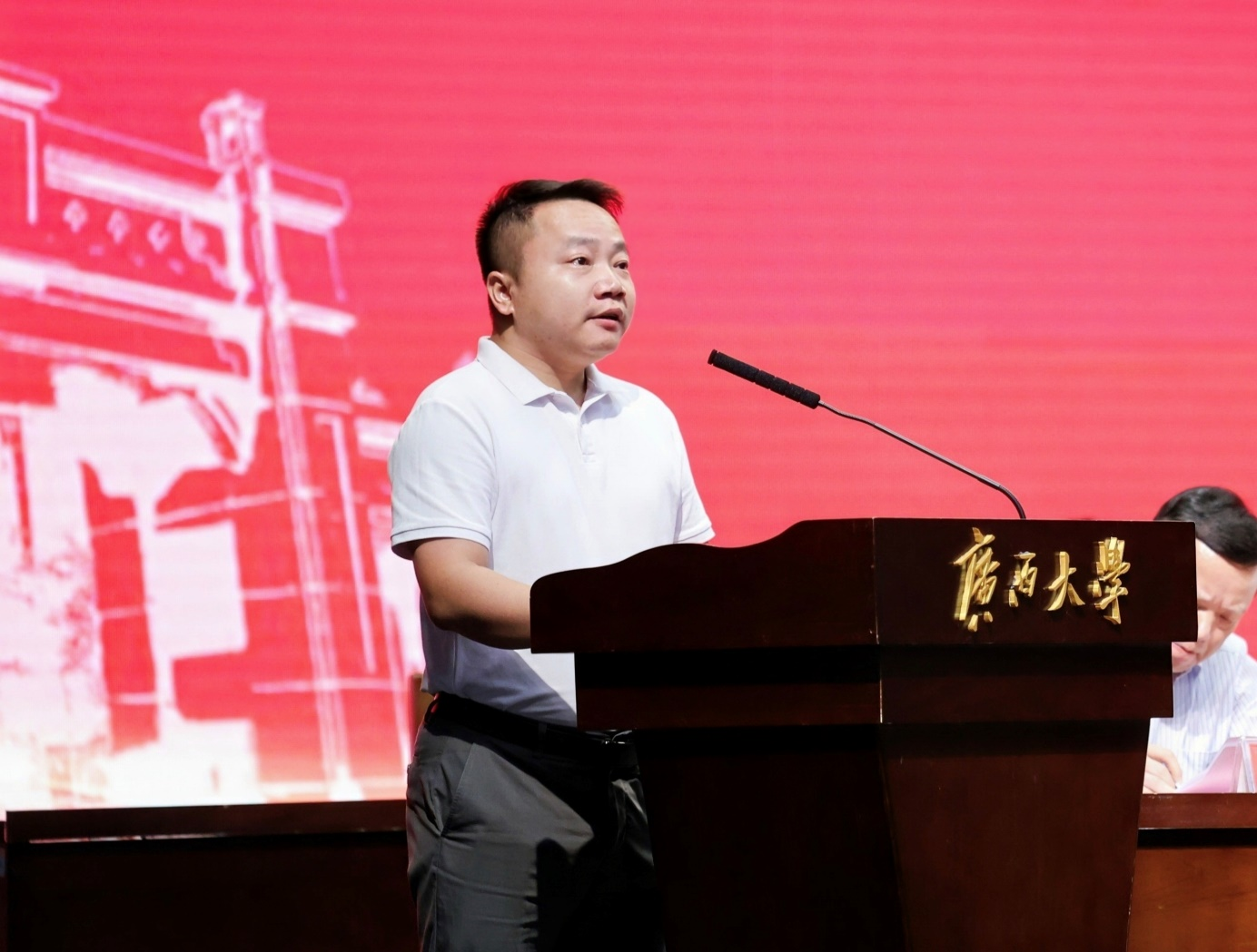 教师代表、金融与财政系教授陈新建在发言中分享了自己在学生时期及科研路上的经历与感悟,鼓励同学们课上多提问,课中多互动,课后多研讨。在汲取专业知识和科学研究过程中坚持问题导向,脚踏实地去学,坚持守正创新,抓住核心问题,探索解决问题的理论方法和实现路径。利用好学院搭建的“中国—东盟”和“边疆”特色培养模式,将所学知识与技能转化为推动中国式现代化的力量基点,为社会发展作贡献。