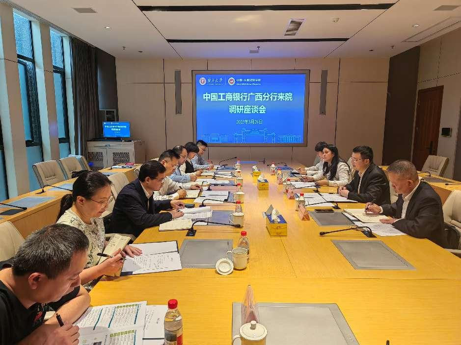 发展沿革、人才培养和学科建设等方面的情况,希望以此次交流为契机,积极推动校企合作。何韶军副行长介绍了工行广西分行的基本情况和工行“一带一路”银行间合作机制(BRBR)以及此次调研的主要目的,他希望发挥工行全球网络优势,结合探花