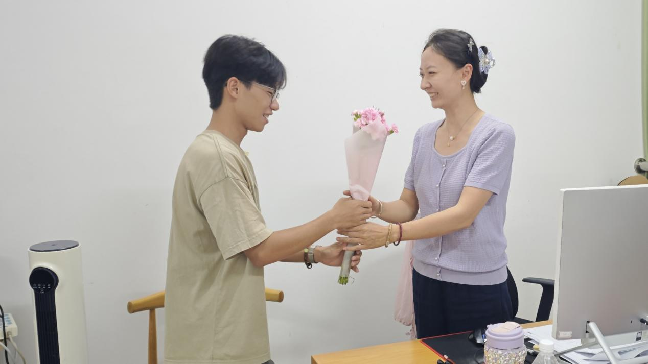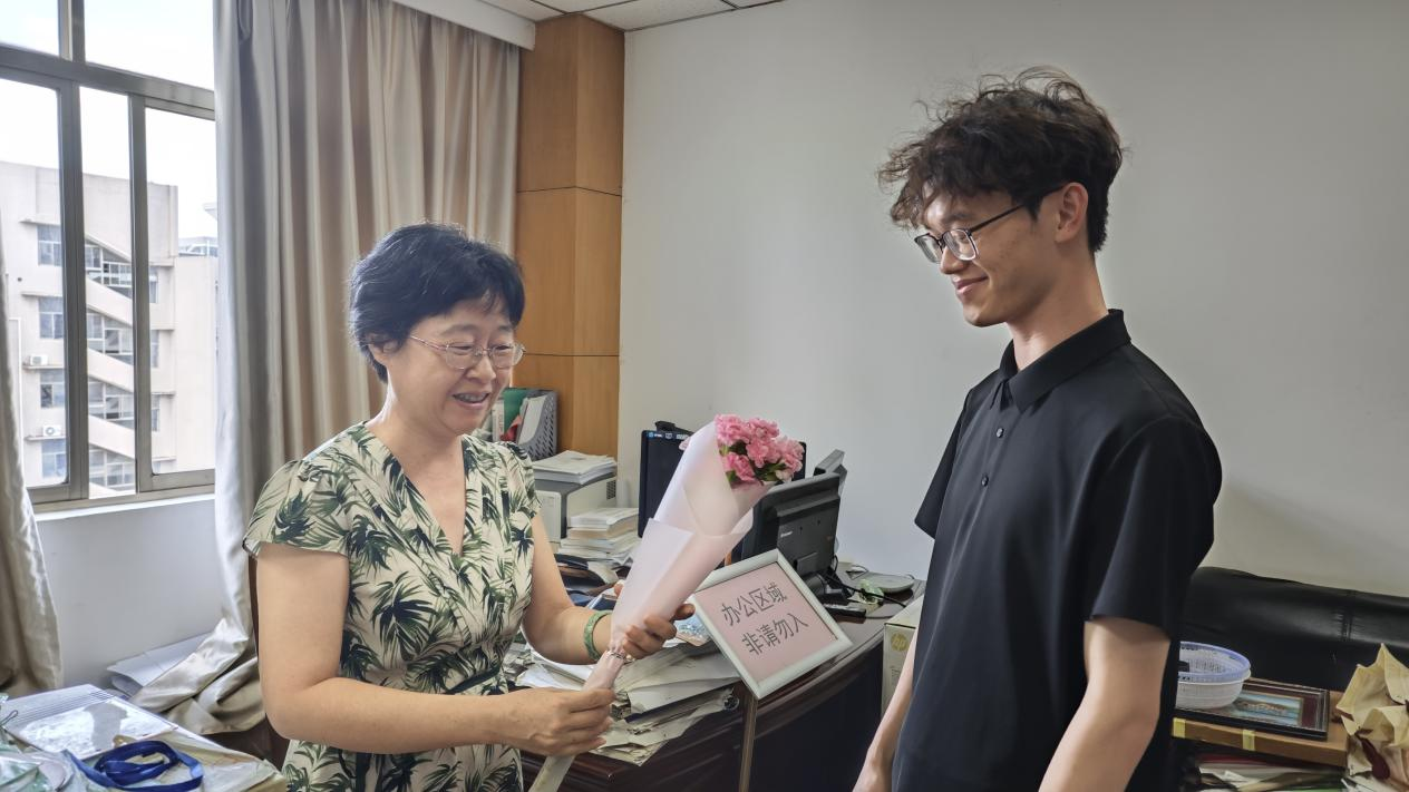 学生代表自发组织,于9月10日下午在学院办公楼举行了一场温馨而庄重的教师节献花活动,向学院领导、行政教辅老师与辅导员们致以节日的诚挚祝福与崇高敬意。