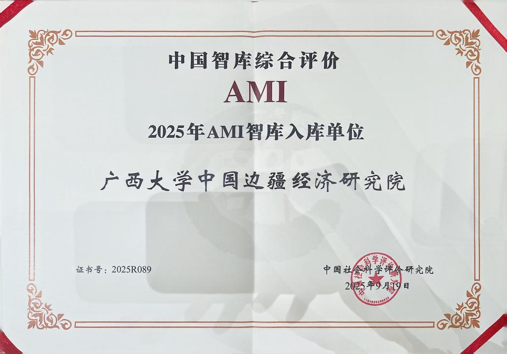 中国边疆经济研究院应邀参加会议,边疆院代表覃诚老师上台领取中国智库评价2025年AMI智库入库单位、中国特色新型智库建设十年回顾参考案例等证书。