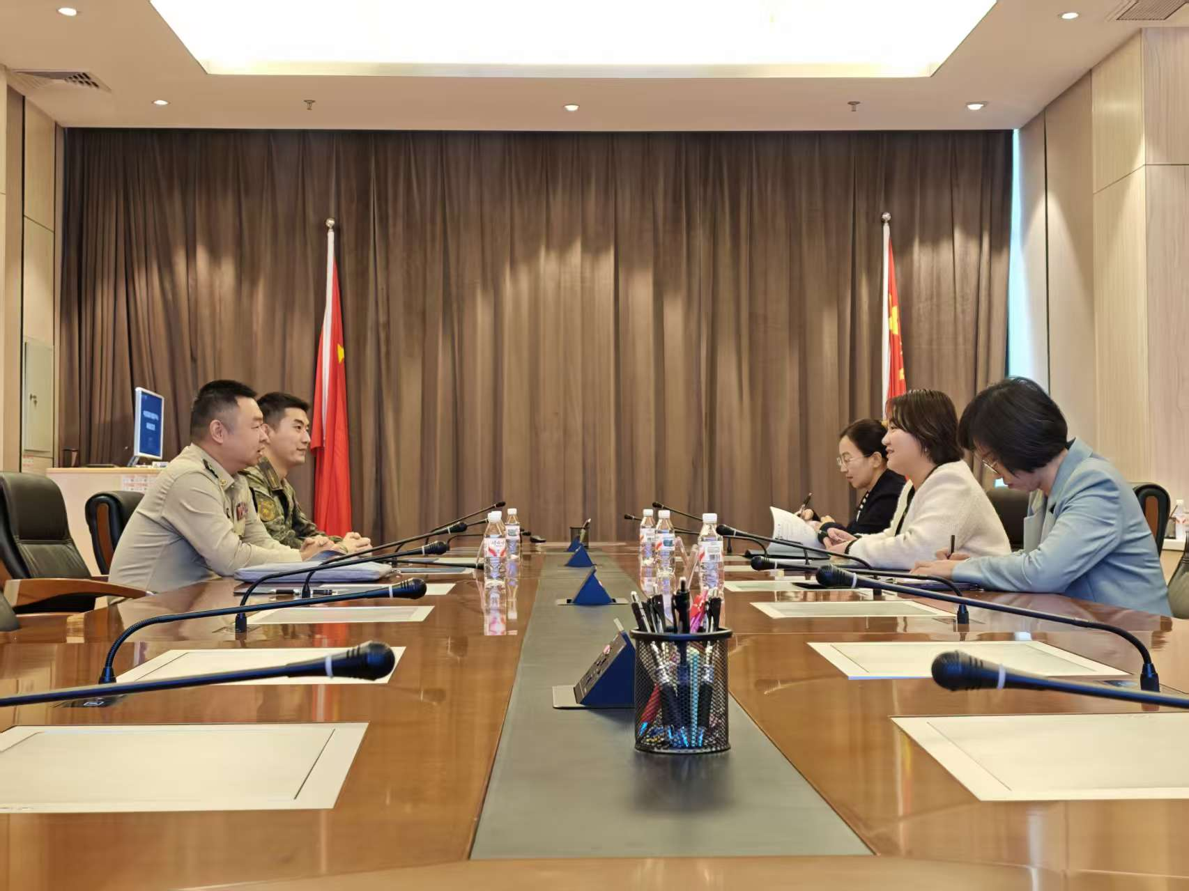 活动伊始,院党委副书记、纪委书记刘梦娟会见了中央军委审计署南宁审计中心党委副书记帅元一行。双方围绕人才联合培养、精准输送等议题进行了亲切交流,共同展望了军地协作育人的广阔前景。院团委书记王海希、学工组辅导员于娜、南宁审计中心军官张弛、文职人员蒋卓欣参与座谈。