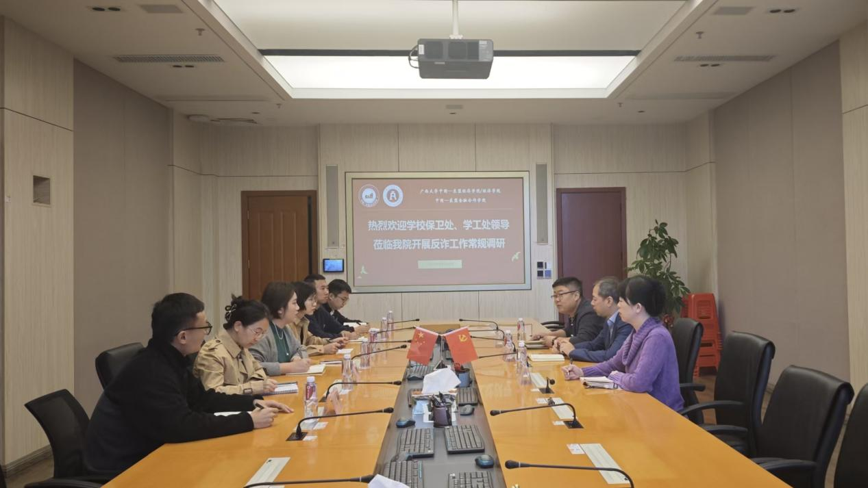 ,专项督导反诈防骗工作,共商构建"全员参与、全程贯通、全域覆盖"的安全防护体系。保卫处副处长陈宏、学工部(处)副处长陈卉娟带队,保卫处金中州老师、探花