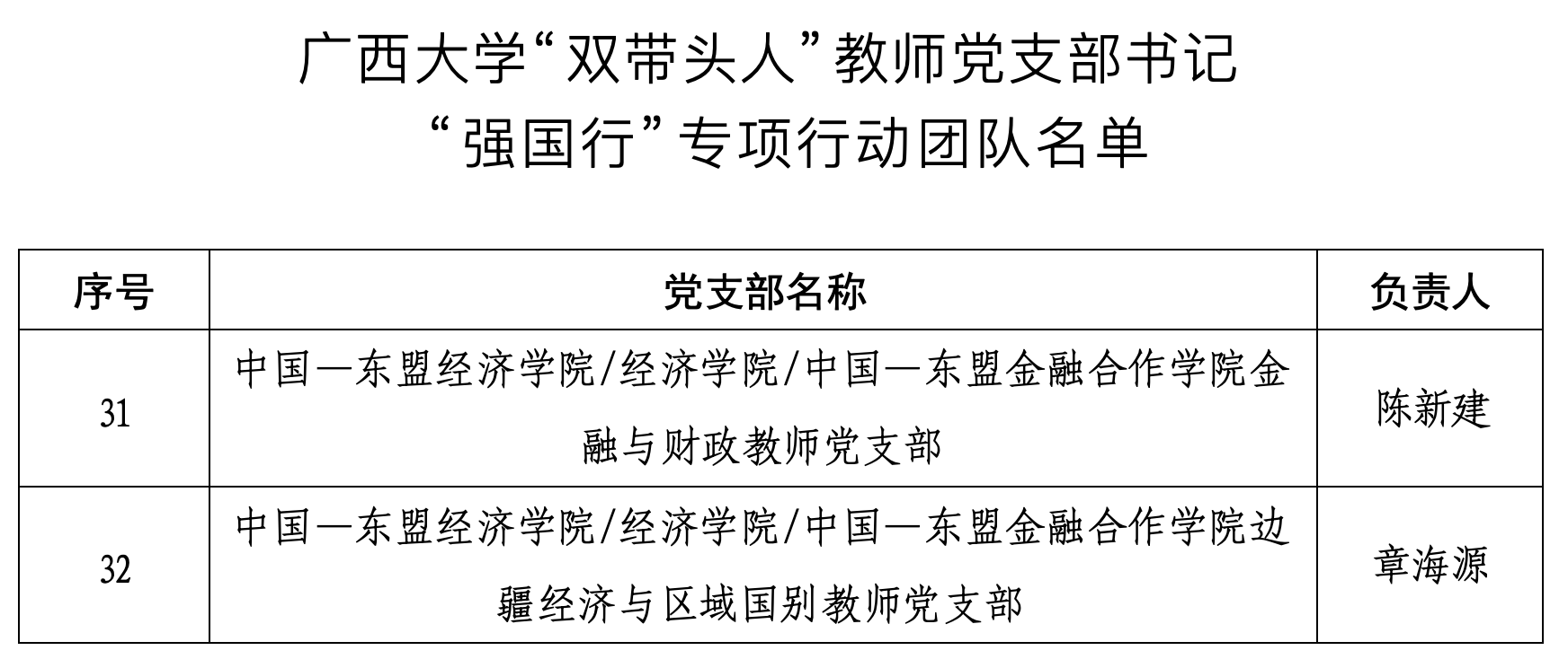 陈新建教授担任负责人的金融与财政教师党支部与章海源教授担任负责人的边疆经济与区域国别教师党支部成功入选。
