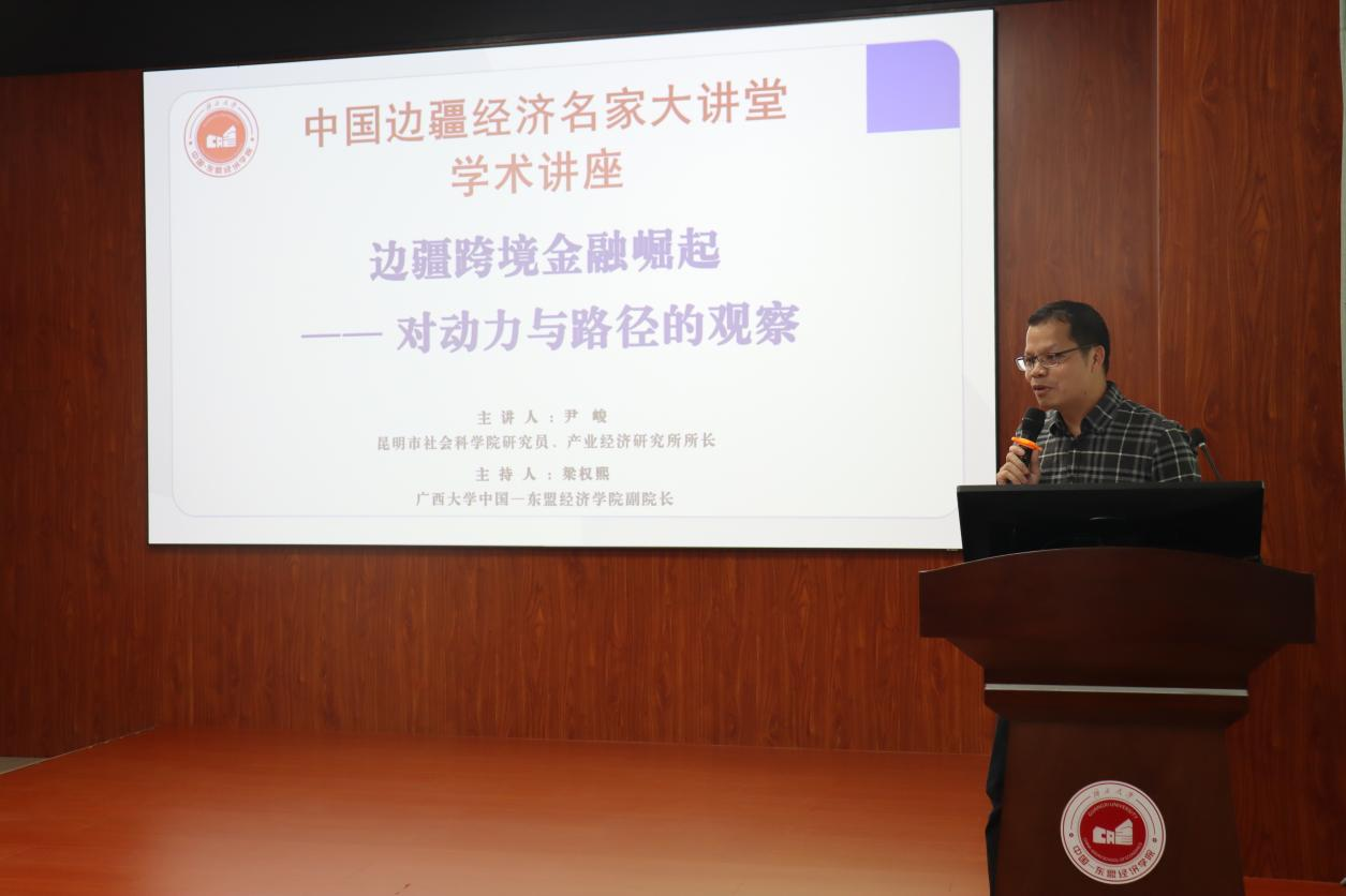 活动伊始,梁权熙副院长向大家介绍了尹峻研究员在区域经济与跨境合作领域的深厚积累,并对他的到来表示热烈欢迎。梁权熙副院长表示,边疆研究一直是学院的重点方向,而跨境金融作为推动边疆发展的关键力量,正日益成为学术关注的热点。他期待本次讲座能为师生们带来新的启发。