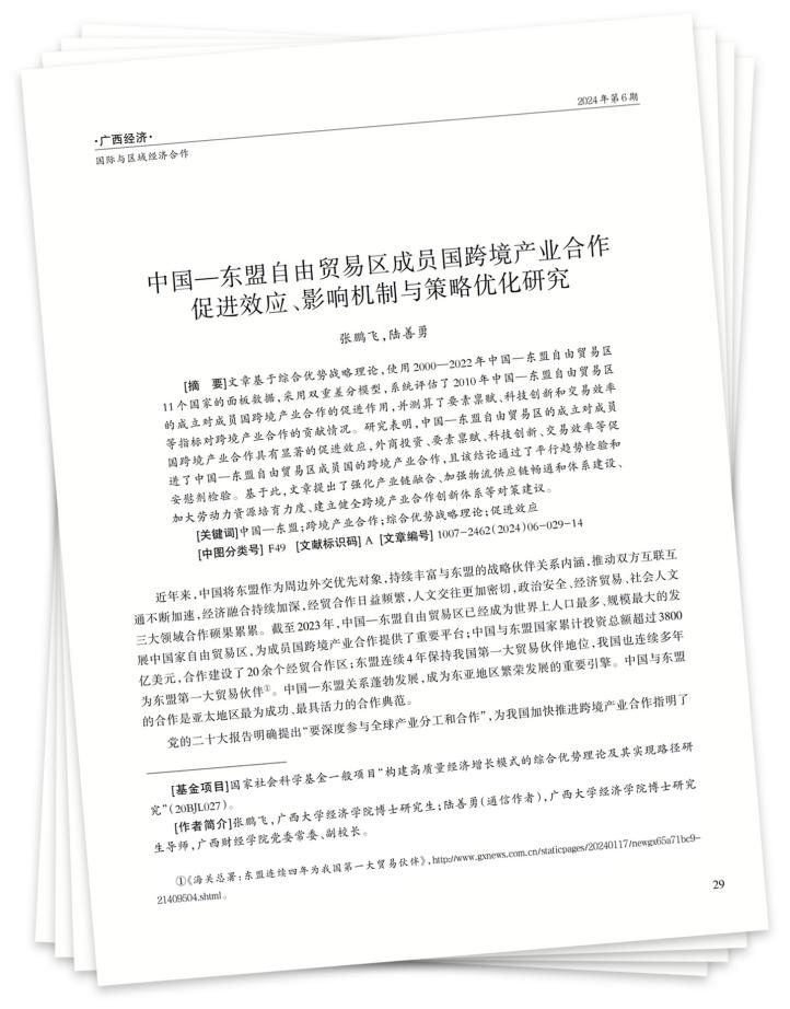 [关键词]中国—东盟;跨境产业合作;综合优势战略理论;促进效应