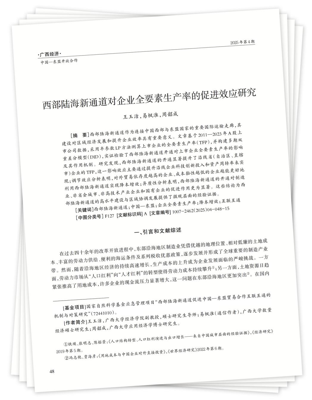 [关键词] 西部陆海新通道;中国—东盟;企业全要素生产率;降本增效;互联互通