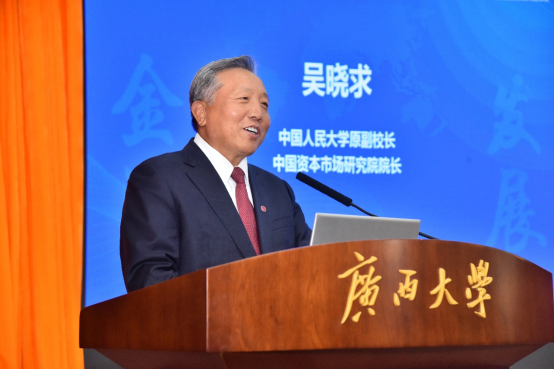 副校长田利辉,清华大学经济管理学院院长白重恩分别在开幕式上致辞。中国人民大学原副校长、中国资本市场研究院院长吴晓求发表了题为《尊重人类文明优秀成果是知识创新的起点》的主题演讲,认为在构建中国自主经济学和金融学的知识体系的时候需要高度关注以下三点:一是要对学科有敬畏之心;二是要注意对常识的尊重;三是对趋势的顺应。